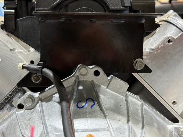 11 Gauge Steel bracket that locates your GM Performance engine harness fuse panel, onto the backside of the engine/transmission in a Defender 90/110/130 LS/LT Engine Swap.