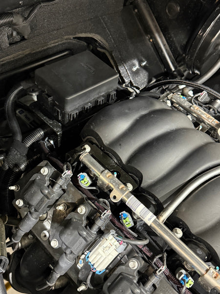 -Utilizing the two 10mm bolt holes that line up with the factory GM P-Clips in the harness, with enough room under the bracket to nicely tuck the remaining engine harness away.